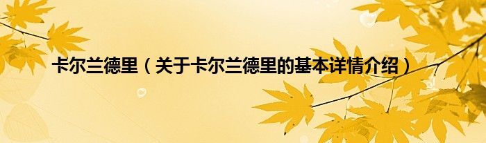 本文关于卡尔兰德里的基本详情介绍就讲解完毕,希望对大家有所帮助。