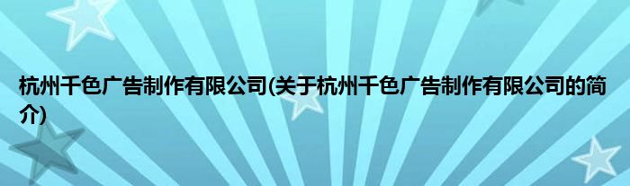 本文关于杭州千色广告制作有限公司的简介就讲解完毕,希望对大家有所帮助。