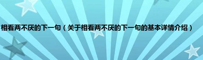 本文关于相看两不厌的下一句的基本详情介绍就讲解完毕,希望对大家有所帮助。