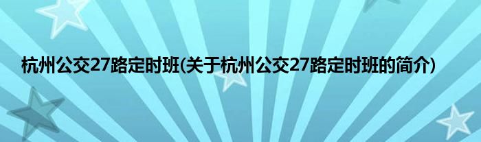 本文关于杭州公交27路定时班的简介就讲解完毕,希望对大家有所帮助。