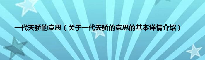 一代天骄的意思(关于一代天骄的意思的基本详情介绍)