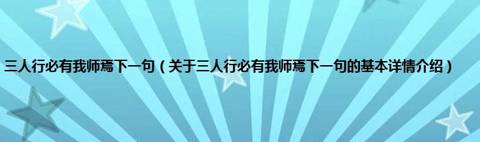 本文关于三人行必有我师焉下一句的基本详情介绍就讲解完毕,希望对大家有所帮助。