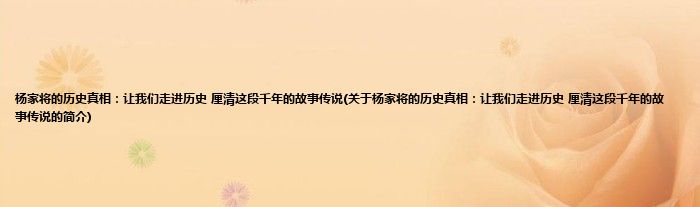 本文关于杨家将的历史真相:让我们走进历史,厘清这段千年的故事传说的简介就讲解完毕,希望对大家有所帮助。