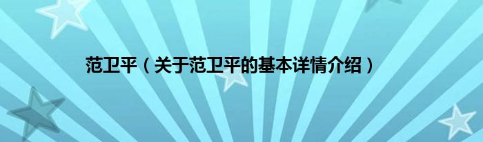 本文关于范卫平的基本详情介绍就讲解完毕,希望对大家有所帮助。