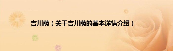 本文关于吉川萌的基本详情介绍就讲解完毕,希望对大家有所帮助。
