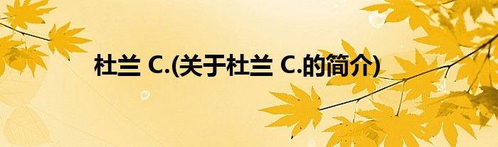 大家好,杜兰,C.,关于杜兰,C.的简介很多人还不知道,现在让我们一起来看看吧!