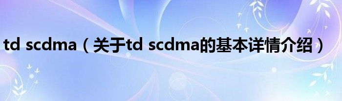 本文关于td scdma的基本详情介绍就讲解完毕,希望对大家有所帮助。