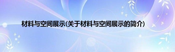 大家好,材料与空间展示,关于材料与空间展示的简介很多人还不知道,现在让我们一起来看看吧!
