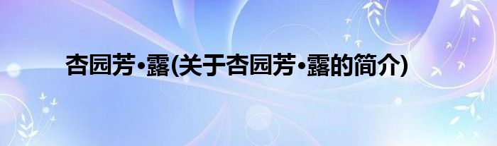 本文关于杏园芳·露的简介就讲解完毕,希望对大家有所帮助。