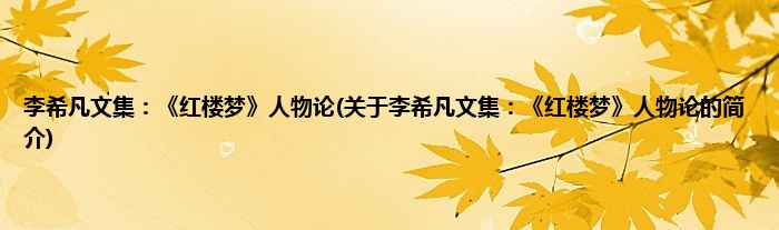 本文关于李希凡文集:《红楼梦》人物论的简介就讲解完毕,希望对大家有所帮助。