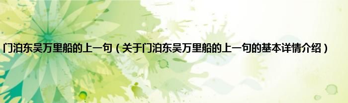 门泊东吴万里船的上一句(关于门泊东吴万里船的上一句的基本详情介绍)