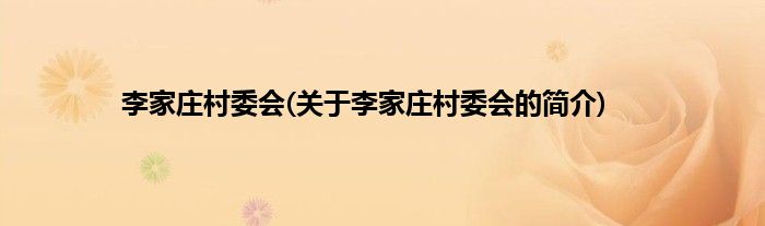 本文关于李家庄村委会的简介就讲解完毕,希望对大家有所帮助。