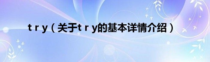 本文关于t r y的基本详情介绍就讲解完毕,希望对大家有所帮助。