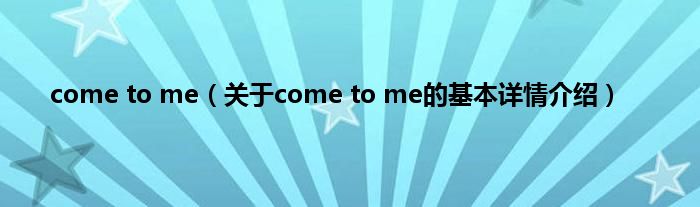 本文关于come to me的基本详情介绍就讲解完毕,希望对大家有所帮助。