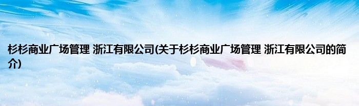 本文关于杉杉商业广场管理 浙江有限公司的简介就讲解完毕,希望对大家有所帮助。
