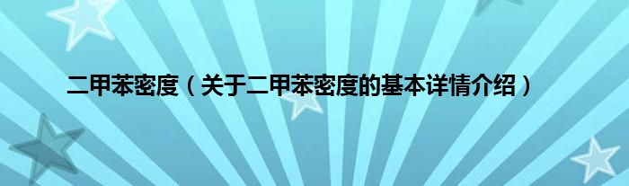 本文关于二甲苯密度的基本详情介绍就讲解完毕,希望对大家有所帮助。