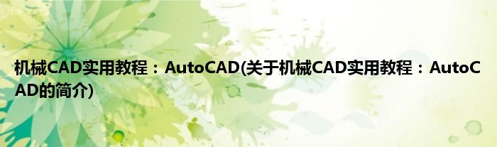 本文关于机械CAD实用教程:AutoCAD的简介就讲解完毕,希望对大家有所帮助。