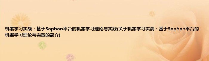 大家好,机器学习实战:基于Sophon平台的机器学习理论与实践,关于机器学习实战:基于Sophon平台的机器学习理论与实践的简介很多人还不知道,现在让我们一起来看看吧!