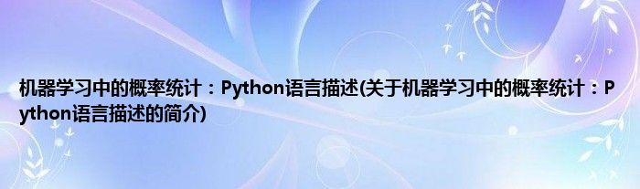 大家好,机器学习中的概率统计:Python语言描述,关于机器学习中的概率统计:Python语言描述的简介很多人还不知道,现在让我们一起来看看吧!