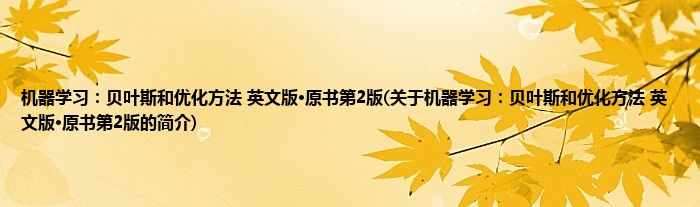 1、 《机器学习:贝叶斯和优化方法(英文版·原书第2版)》是2020年机械工业出版社出版的图书。