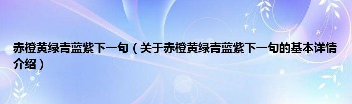本文关于赤橙黄绿青蓝紫下一句的基本详情介绍就讲解完毕,希望对大家有所帮助。