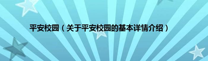 本文关于平安校园的基本详情介绍就讲解完毕,希望对大家有所帮助。