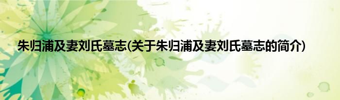 本文关于朱归浦及妻刘氏墓志的简介就讲解完毕,希望对大家有所帮助。