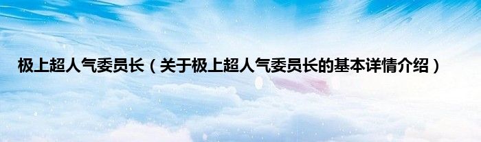 本文关于极上超人气委员长的基本详情介绍就讲解完毕,希望对大家有所帮助。