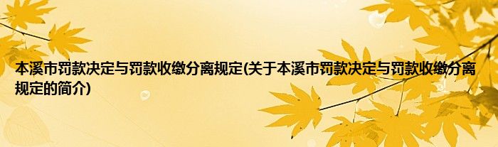 本文关于本溪市罚款决定与罚款收缴分离规定的简介就讲解完毕,希望对大家有所帮助。