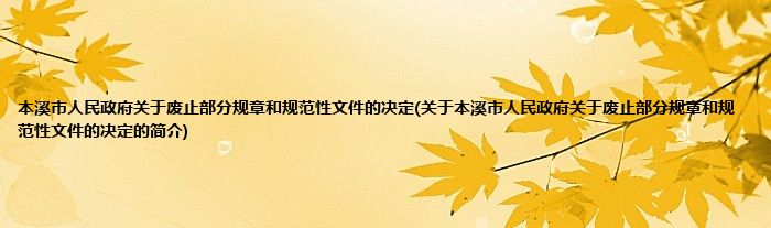 大家好,本溪市人民政府关于废止部分规章和规范性文件的决定,关于本溪市人民政府关于废止部分规章和规范性文件的决定的简介很多人还不知道,现在让我们一起来看看吧!