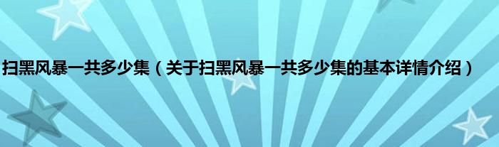 本文关于扫黑风暴一共多少集的基本详情介绍就讲解完毕,希望对大家有所帮助。