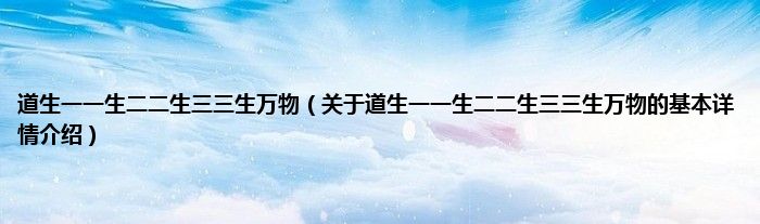 本文关于道生一一生二二生三三生万物的基本详情介绍就讲解完毕,希望对大家有所帮助。