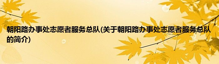 本文关于朝阳路办事处志愿者服务总队的简介就讲解完毕,希望对大家有所帮助。