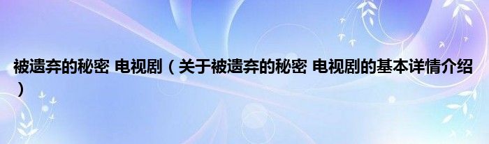 本文关于被遗弃的秘密 电视剧的基本详情介绍就讲解完毕,希望对大家有所帮助。