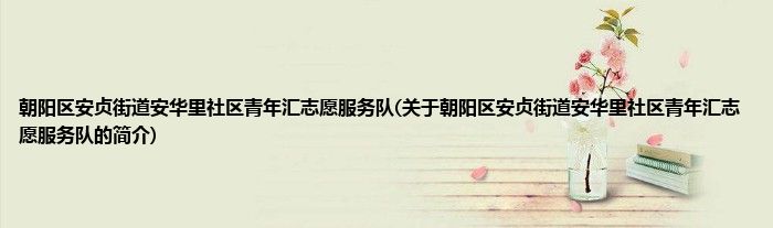 本文关于朝阳区安贞街道安华里社区青年汇志愿服务队的简介就讲解完毕,希望对大家有所帮助。