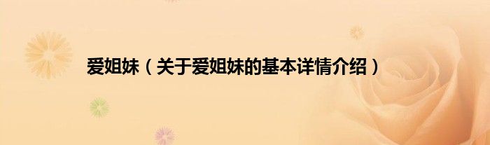 本文关于爱姐妹的基本详情介绍就讲解完毕,希望对大家有所帮助。