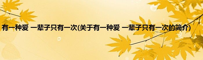 本文关于有一种爱,一辈子只有一次的简介就讲解完毕,希望对大家有所帮助。