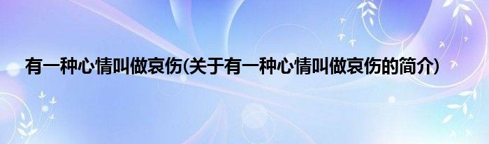 大家好,有一种心情叫做哀伤,关于有一种心情叫做哀伤的简介很多人还不知道,现在让我们一起来看看吧!
