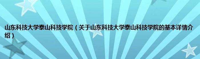 本文关于山东科技大学泰山科技学院的基本详情介绍就讲解完毕,希望对大家有所帮助。