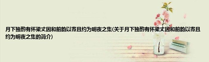 本文关于月下独酌有怀梁丈因和前韵以寄且约为明夜之集的简介就讲解完毕,希望对大家有所帮助。