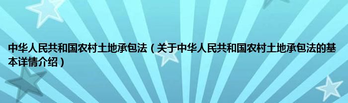 本文关于中华人民共和国农村土地承包法的基本详情介绍就讲解完毕,希望对大家有所帮助。