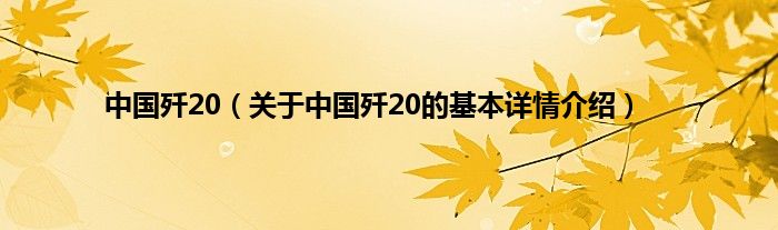 本文关于中国歼20的基本详情介绍就讲解完毕,希望对大家有所帮助。