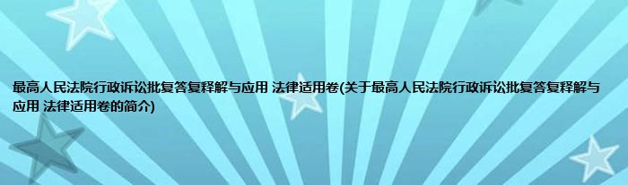 本文关于最高人民法院行政诉讼批复答复释解与应用 法律适用卷的简介就讲解完毕,希望对大家有所帮助。