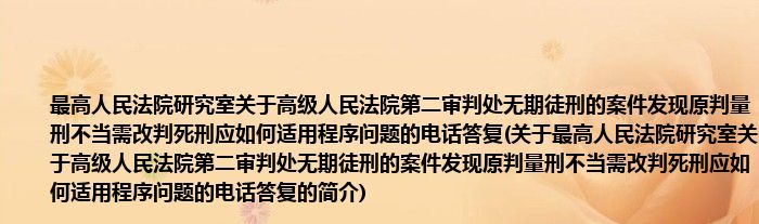 本文关于最高人民法院研究室关于高级人民法院第二审判处无期徒刑的案件发现原判量刑不当需改判死刑应如何适用程序问题的电话答复的简介就讲解完毕,希望对大家有所帮助。