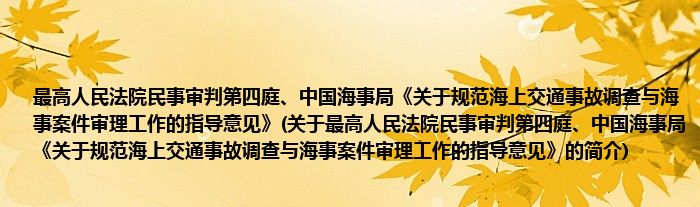 本文关于最高人民法院民事审判第四庭、中国海事局《关于规范海上交通事故调查与海事案件审理工作的指导意见》的简介就讲解完毕,希望对大家有所帮助。
