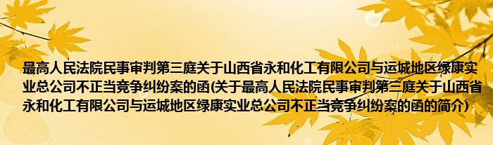《最高人民法院民事审判第三庭关于山西省永和化工有限公司与运城地区绿康实业总公司不正当竞争纠纷案的函》在2001.03.09由最高人民法院民事审判第三庭颁布。