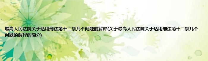 大家好,最高人民法院关于适用刑法第十二条几个问题的解释,关于最高人民法院关于适用刑法第十二条几个问题的解释的简介很多人还不知道,现在让我们一起来看看吧!