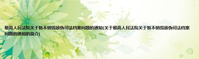 本文关于最高人民法院关于暂不销毁敌伪司法档案问题的通知的简介就讲解完毕,希望对大家有所帮助。