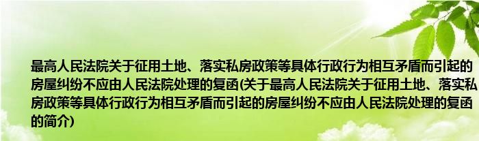 本文关于最高人民法院关于征用土地、落实私房政策等具体行政行为相互矛盾而引起的房屋纠纷不应由人民法院处理的复函的简介就讲解完毕,希望对大家有所帮助。