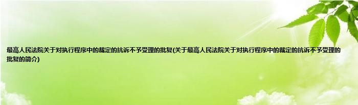 大家好,最高人民法院关于对执行程序中的裁定的抗诉不予受理的批复,关于最高人民法院关于对执行程序中的裁定的抗诉不予受理的批复的简介很多人还不知道,现在让我们一起来看看吧!
